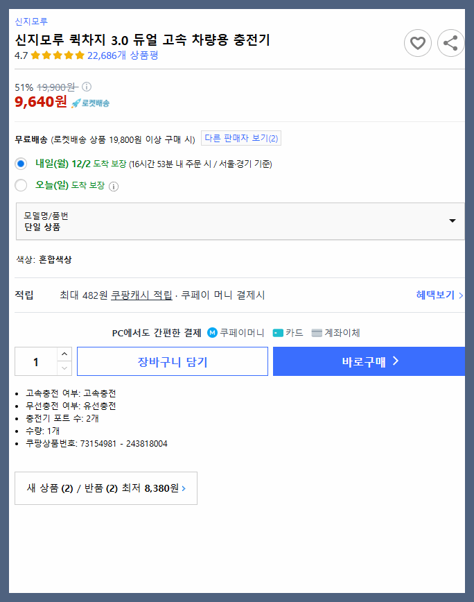 가성비 끝판왕! 신지모루 시가잭 듀얼 고속 충전기 추천 이유