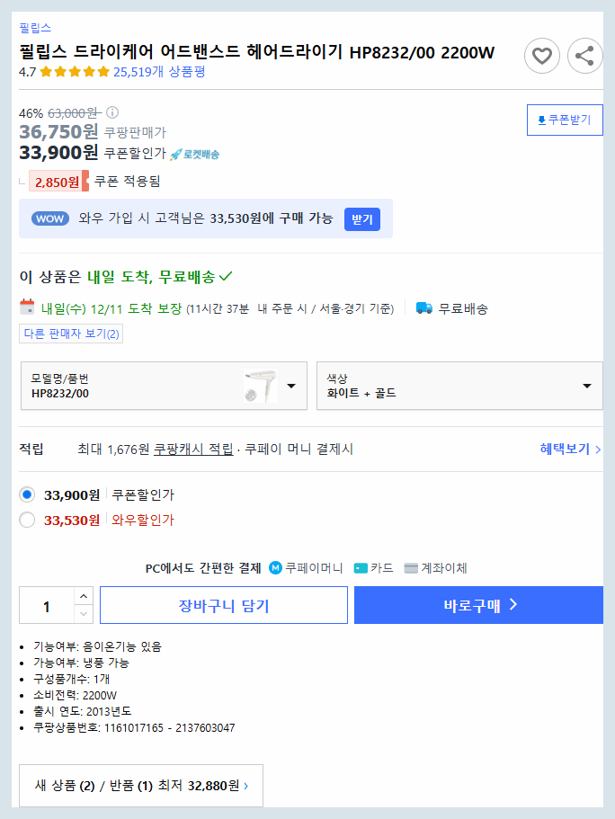 빠른 건조와 풍성한 볼륨을 원하는 분들께 강력 추천합니다! 무게감이나 볼륨 디퓨저 효과는 개인차가 있을 수 있지만, 전체적으로 저는 아주 만족하며 사용하고 있습니다. 합리적인 가격에 뛰어난 성능의 헤어드라이기를 찾고 있다면, 필립스 드라이케어 어드밴스드 HP8232/00를 꼭 한번 사용해보세요! 특히 할인 기간을 노리면 더욱 저렴하게 구매할 수 있답니다!